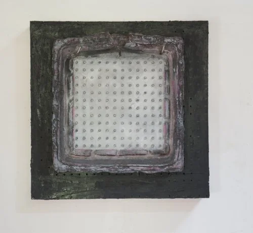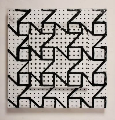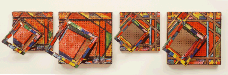 He started creating large installations with pegboard for solo exhibitions at the Institute of Contemporary Art in Boston, the Williams College Art Gallery, the Rose Art Museum, and the Whitechapel Gallery in London. He then began making smaller pegboard works, as either single paintings or in series; on some, he hung elaborately painted wooden frames; for others, he covered the pegboard with thickly impastoed paint. These individual works were shown in half a dozen commercial galleries in Boston and New York, and bought for both private and public collections, including Time Warner, JP Morgan Chase, the Alfonso Ossorio Foundation, and the Rose Art Museum.